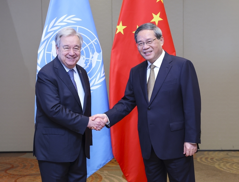 当地时间7月8日,国务院总理李强在里约热内卢会见联合国秘书长古特雷斯。